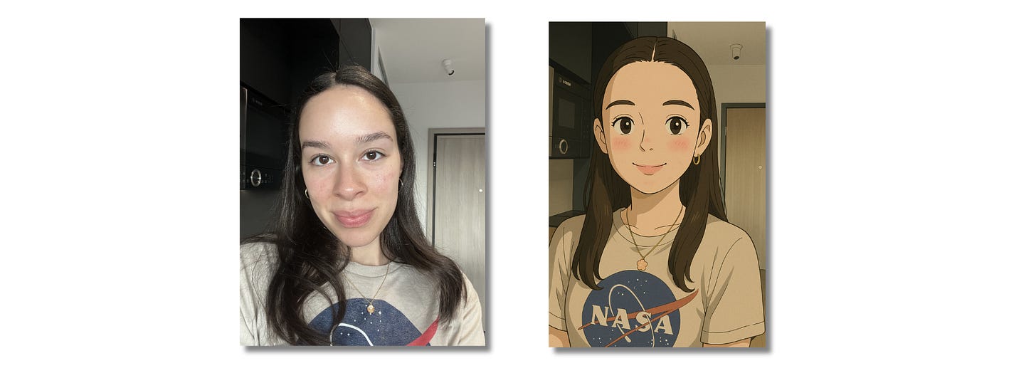 Was it fun? Sure, it was kind of fun. Do I look like the images? Happily, not so much yet. But, from a tech perspective, it is hands-down amazing! The exact recreation of all the details of the initial image is striking, and it even got the text right â check NASA or Rio 2016. Nevertheless, it is really interesting to consider that, given this tool allowing us to create literally any illustration, everyone chose to create Ghibli-style images that donât even resemble us and are lowkey somewhat of an offense to the original Studio Ghibli artwork. Human beings never fail to amaze usâŚ